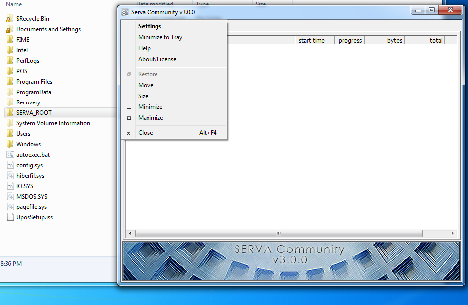 4. Run Serva.exe and click Left Top side icon to select Settings